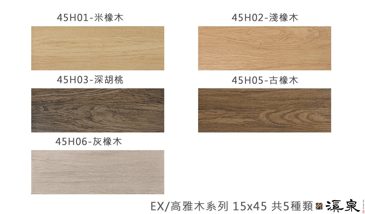 數位噴墨高雅木為適合室内外地壁用之石英磚。表面數位多塗層,釉面具備防滑、亞光、耐磨效果。24種豐富圖面,數位噴墨多塗層結合仿木模面製程。顏色自然變化,高雅大方,經久耐用,呈現原木豐富原始質感。