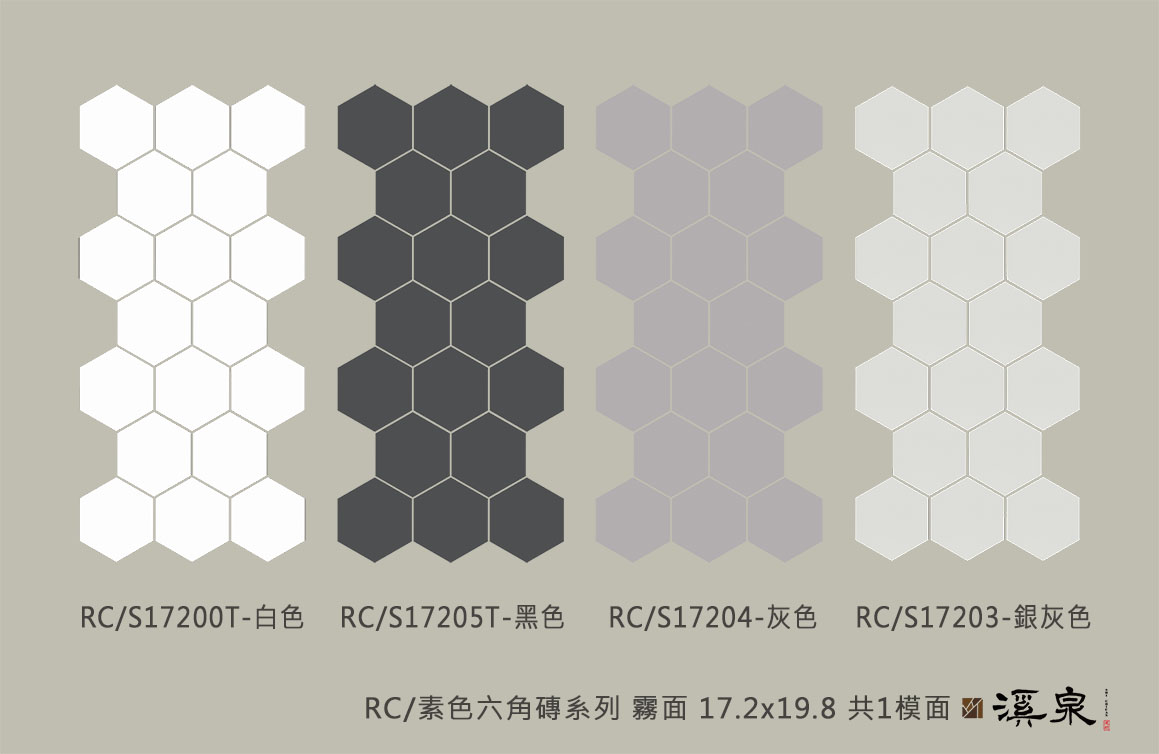 RC/素色六角磚系列 黑 灰 銀灰 白 霧面 17.2*19.8