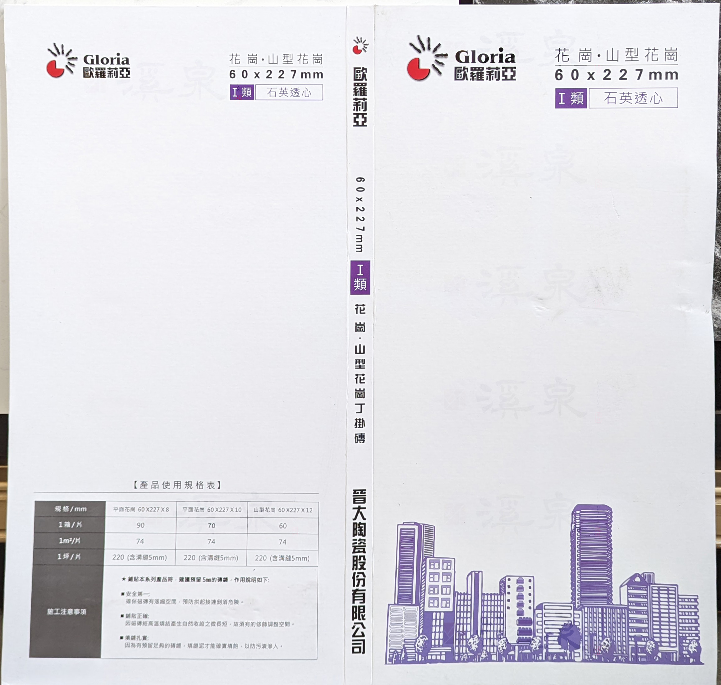 | 1坪/片 | 220片/坪(含溝縫5mm) | 220片/坪(含溝縫5mm) | 220片/坪(含溝縫5mm) |